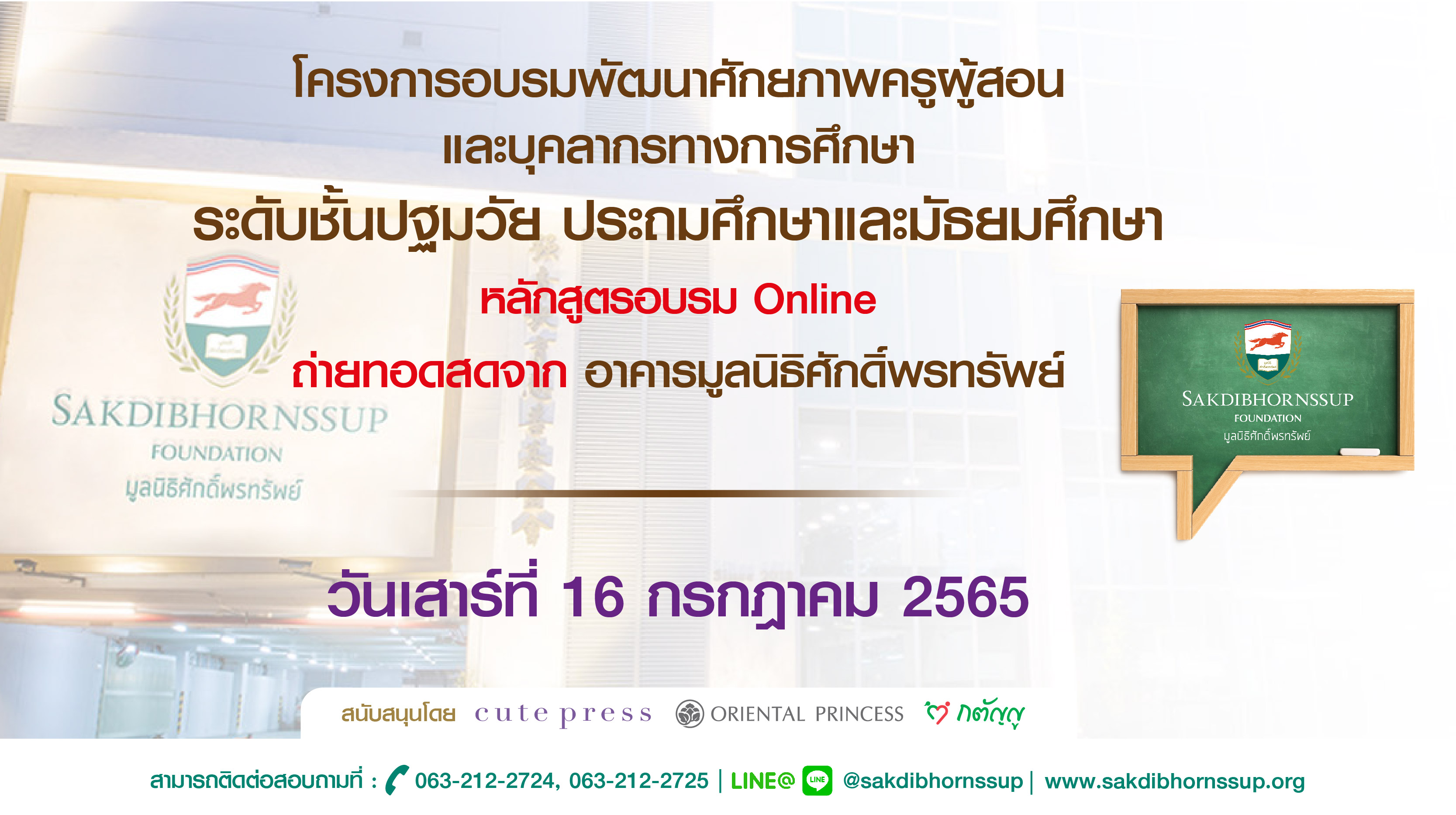 ข่าวประชาสัมพันธ์ รายชื่อหลักสูตรที่เปิดอบรม ประชาสัมพันธ์หลักสูตรอบรมออนไลน์ วันเสาร์ที่ 16 กรกฎาคม 2565 : 8 หลักสูตร July 12, 2022 kusol admin วันเสาร์ที่ 16 กรกฎาคม 2565 สมัครอบรมออนไลน์ คลิก http://register.kusol.org/ เวลา 09.00-17.00