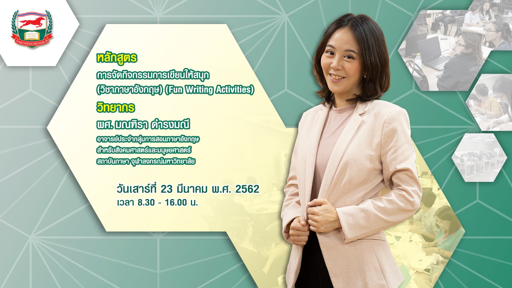 คลิปวิดีโอและภาพบรรยากาศการอบรม : การจัดกิจกรรมการเขียนให้สนุก(วิชาภาษาอังกฤษ) (Fun Writing Activities) วิทยากร : ผศ.มณฑิรา ดำรงมณี วันเสาร์ที่ 23 มีนาคม พ.ศ. 2562