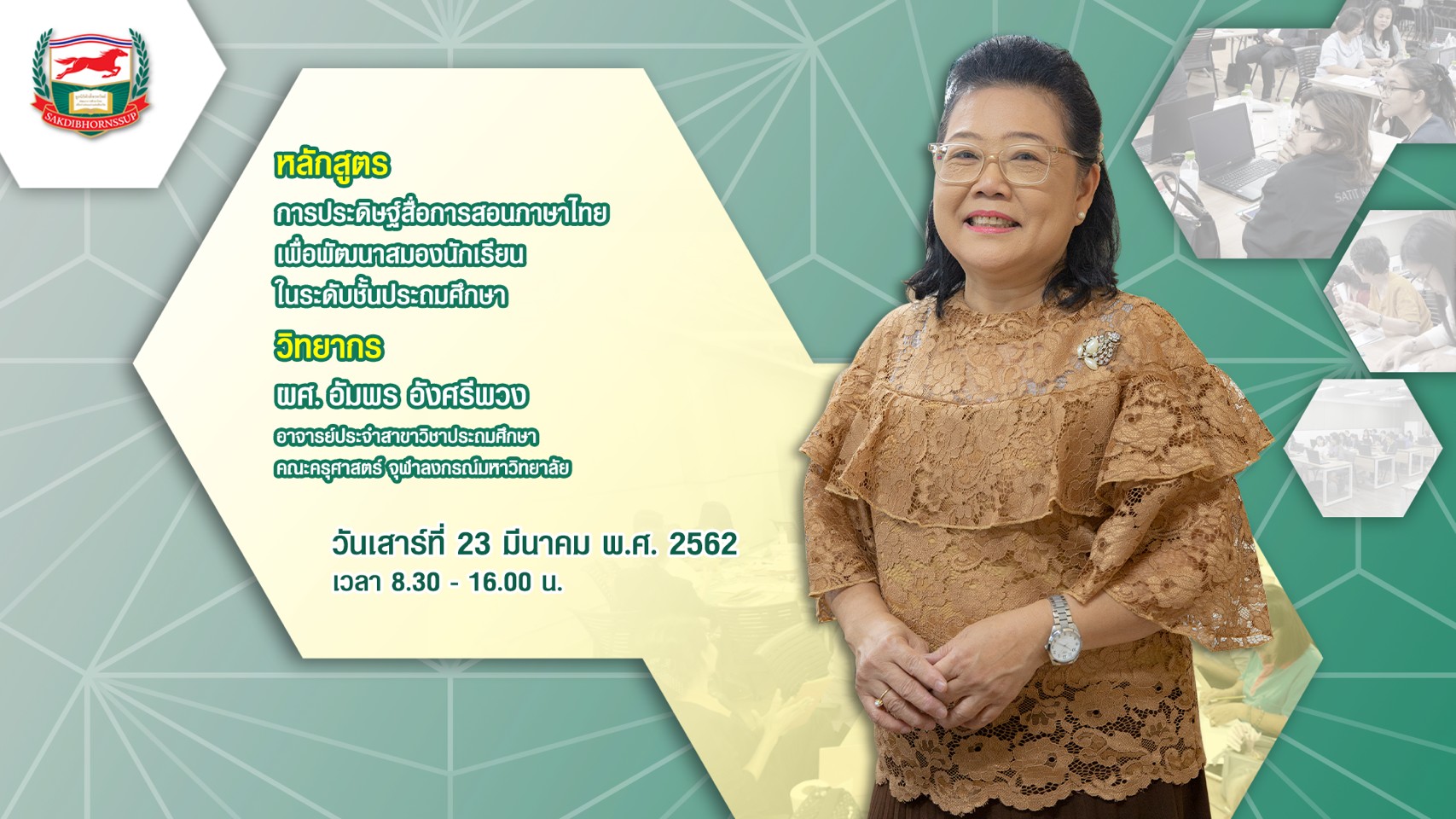 คลิปวิดีโอ และภาพบรรยากาศการอบรม : การประดิษฐ์สื่อการสอนภาษาไทยเพื่อพัฒนาสมองนักเรียนในระดับชั้นประถมศึกษา วิทยากร : ผศ.อัมพร อังศรีพวง วันเสาร์ที่ 23 มีนาคม พ.ศ. 2562