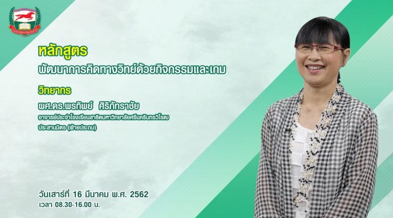 คลิปวิดีโอและภาพบรรยากาศการอบรม : พัฒนาการคิดทางวิทย์ด้วยกิจกรรมและเกม วิทยากร: ผู้ช่วยศาสตราจารย์ ดร.พรทิพย์ ศิริภัทราชัย วันที่ 16 มีนาคม 2562