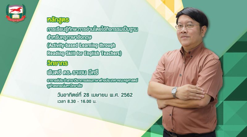 คลิปวิดีโอและภาพบรรยากาศการอบรม : การเรียนรู้ทักษะการอ่านโดยใช้กิจกรรมเป็นฐาน สำหรับครูภาษาอังกฤษ (Activity-based Learning through Reading Skill forEnglish Teachers) วันที่ 28 เมษายน 2562