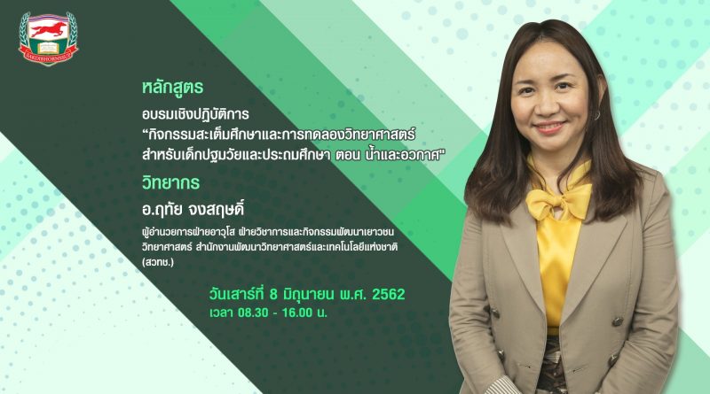 คลิปวิดีโอและภาพบรรยากาศการอบรม : อบรมเชิงปฏิบัติการ“กิจกรรมสะเต็มศึกษาและการทดลองวิทยาศาสตร์สำหรับเด็กปฐมวัยและประถมศึกษา ตอน น้ำและอวกาศ” วันเสาร์ที่ 8 มิถุนายน พ.ศ. 2562