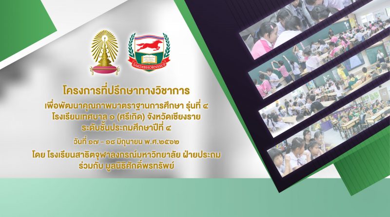 คลิปวิดีโอและภาพบรรยากาศการอบรม : โครงการที่ปรึกษาทางวิชาการ เพื่อพัฒนาคุณภาพมาตราฐานการศึกษา โดย โรงเรียนสาธิตจุฬาลงกรณ์มหาวิทยาลัยฝ่ายประถม ปี 2562 รุ่นที่ 4 โรงเรียนเทศบาล 1 (ศรีเกิด) จังหวัดเชียงราย ระดับชั้นประถมศึกษาปีที่ 4 วันที่ 17-18 มิถุนายน 2562