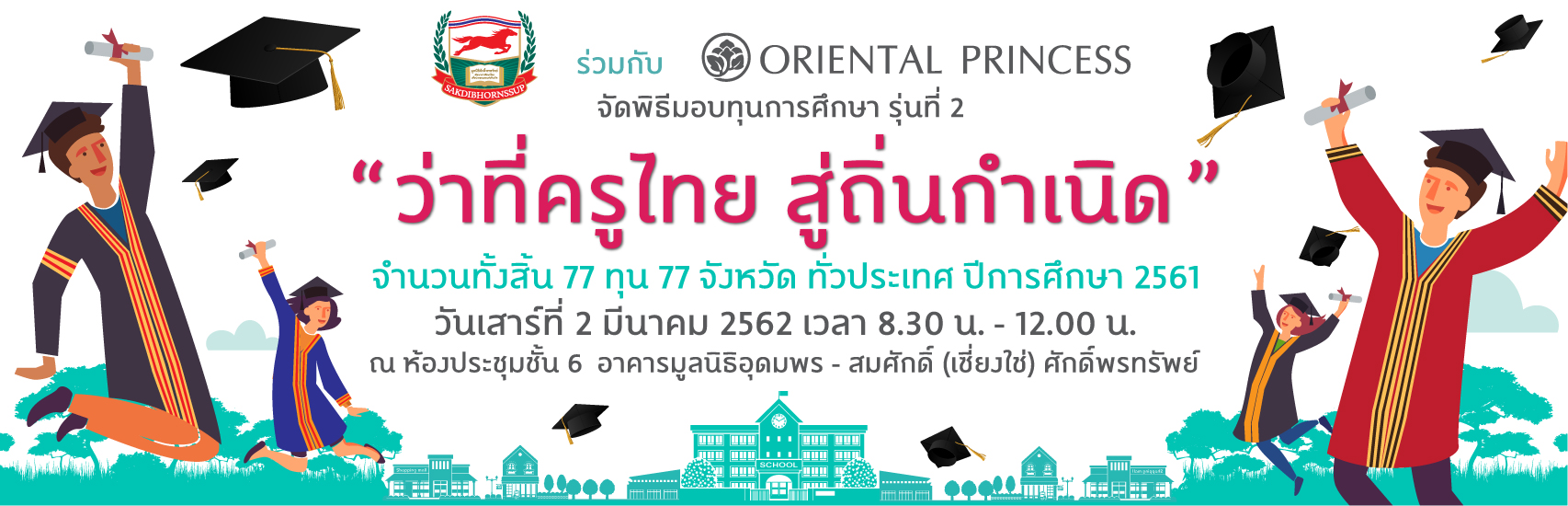 พิธีมอบทุนการศึกษา”ว่าที่ครูไทยสู่ถิ่นกำเนิด รุ่นที่ 2 “ประจำปีการศึกษา 2561 จำนวน 77 ทุน