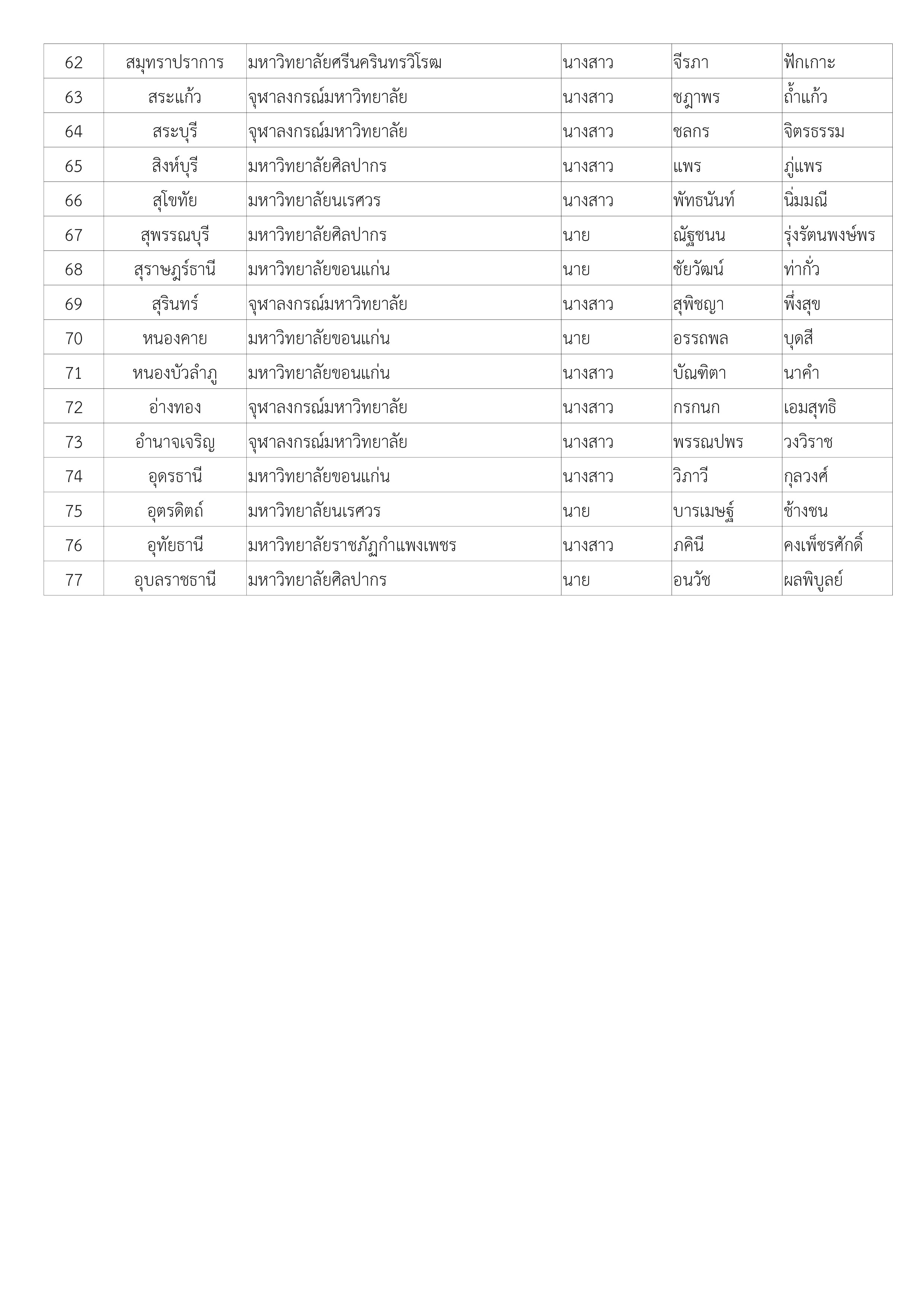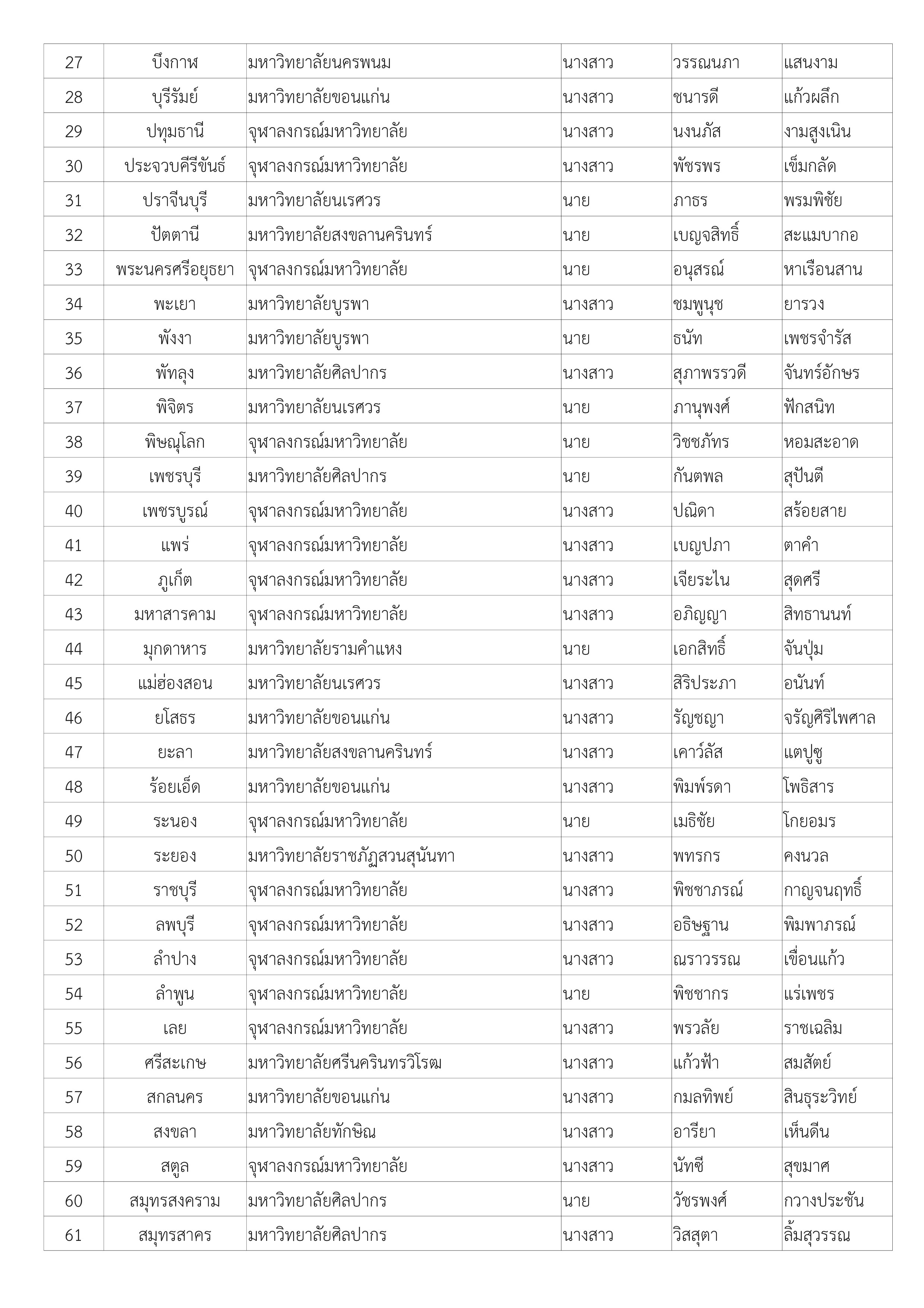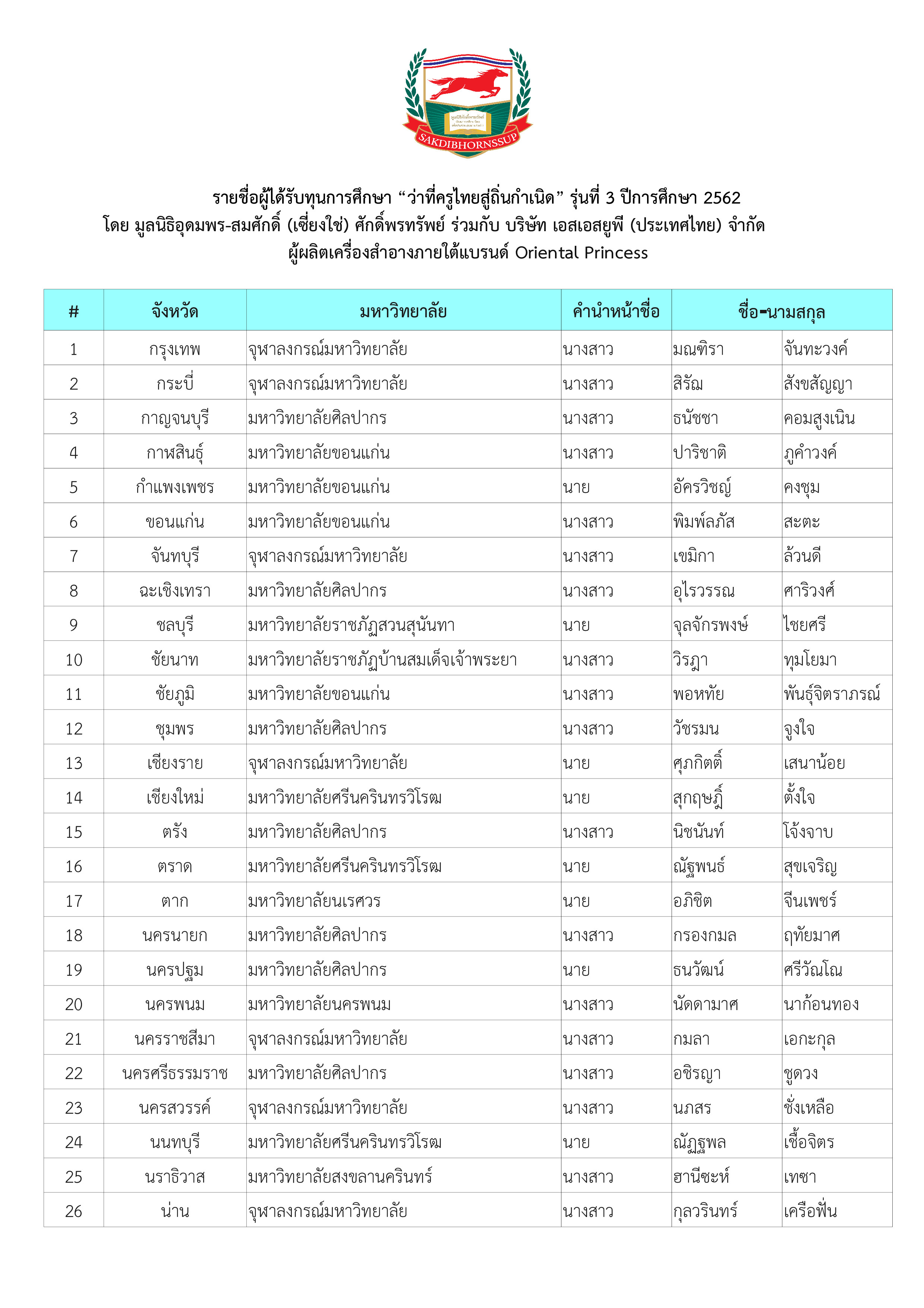 รายชื่อผู้ได้รับทุนการศึกษา “ว่าที่ครูไทย” รุ่นที่ 3 ปีการศึกษา 2562