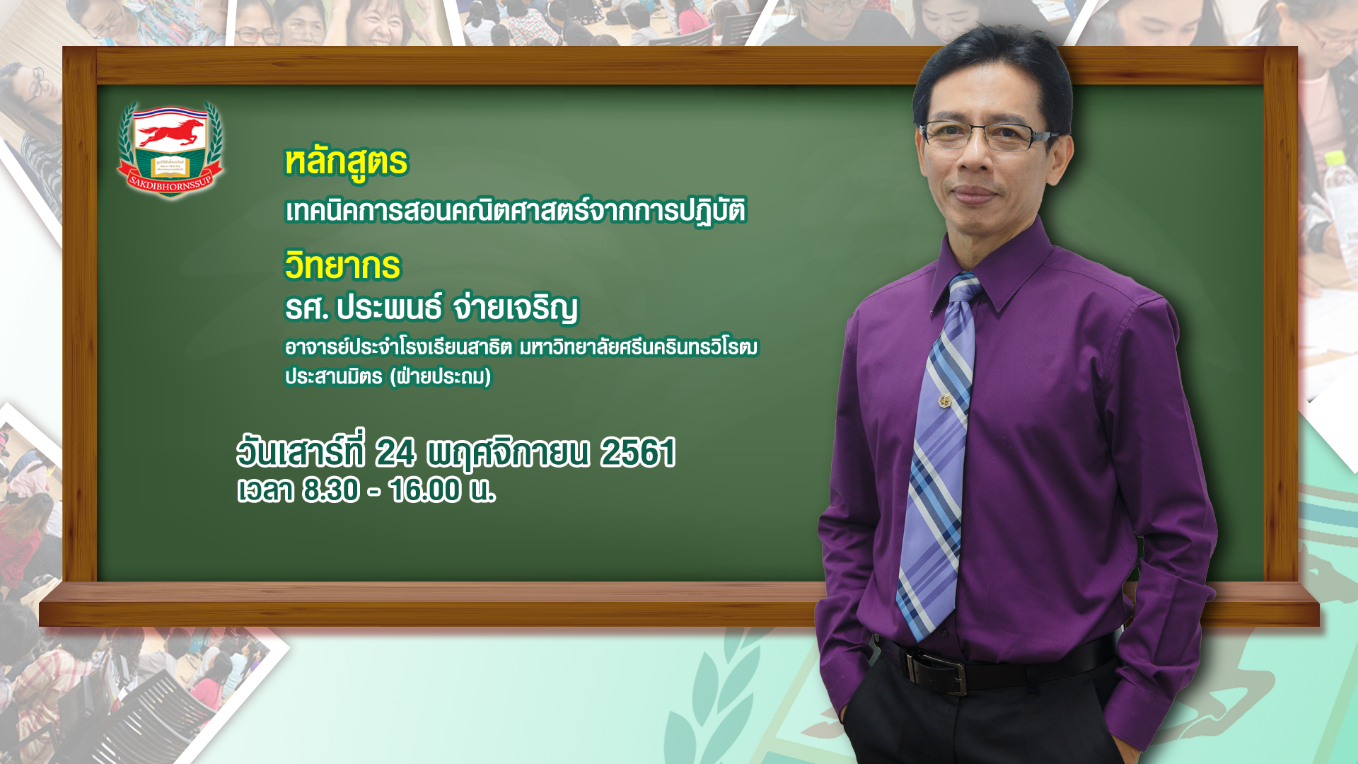 สกู๊ป และ ภาพบรรยากาศ หลักสูตร เทคนิคการสอนคณิตศาสตร์จากการปฏิบัติ วิทยากร รศ.ประพนธ์ จ่ายเจริญ