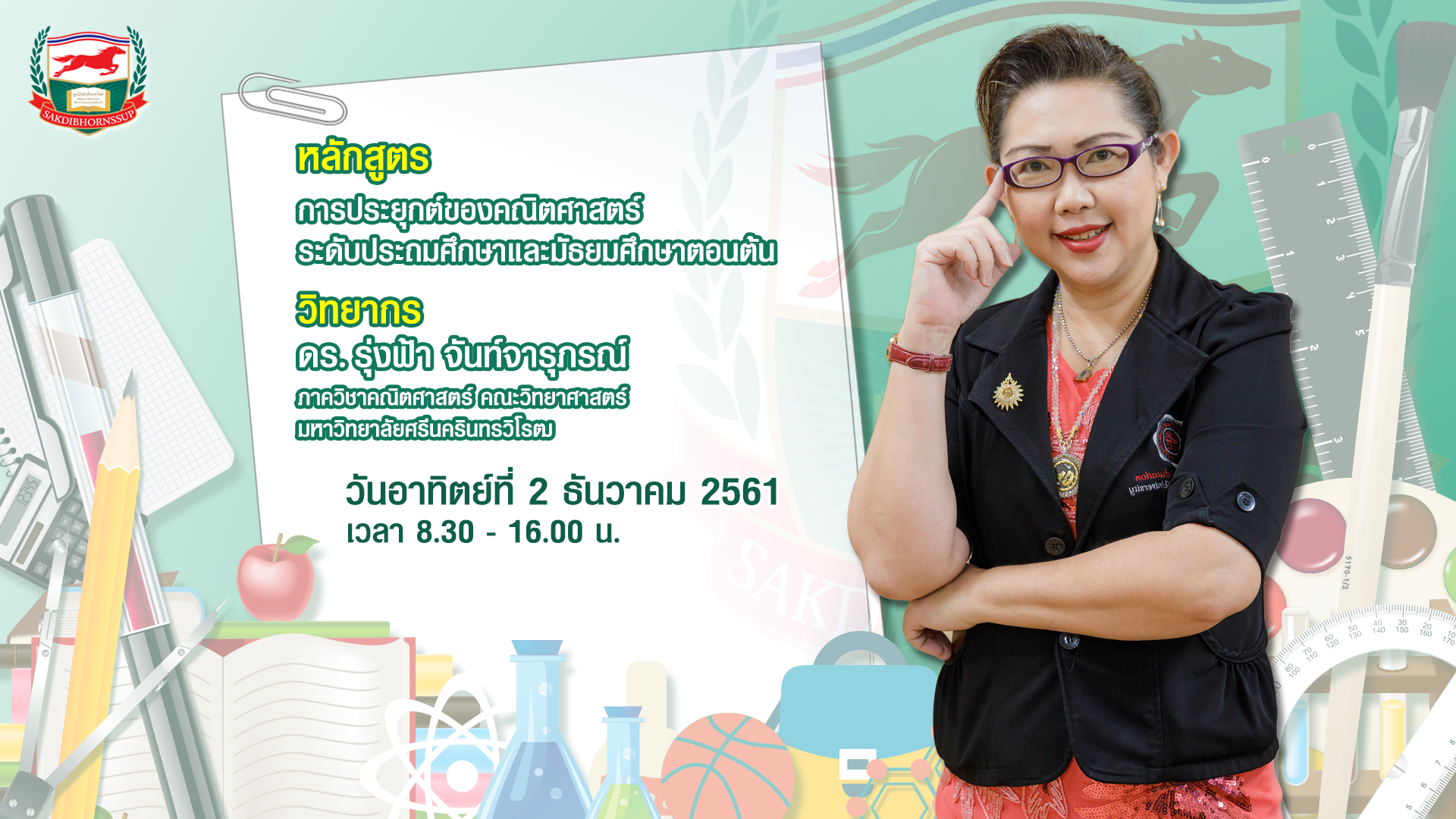 สกู๊ป และ ภาพบรรยากาศ หลักสูตร การประยุกต์ของคณิตศาสตร์ระดับประถมศึกษาและมัธยมศึกษาตอนต้น วิทยากร ดร.รุ่งฟ้า จันท์จารุภรณ์