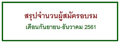 ภาพกิจกรรม สรุปจำนวนผู้สมัครอบรม ประจำวันที่ 21 กันยายน 2561 September 22, 2018September 22, 2018 kusol_admin