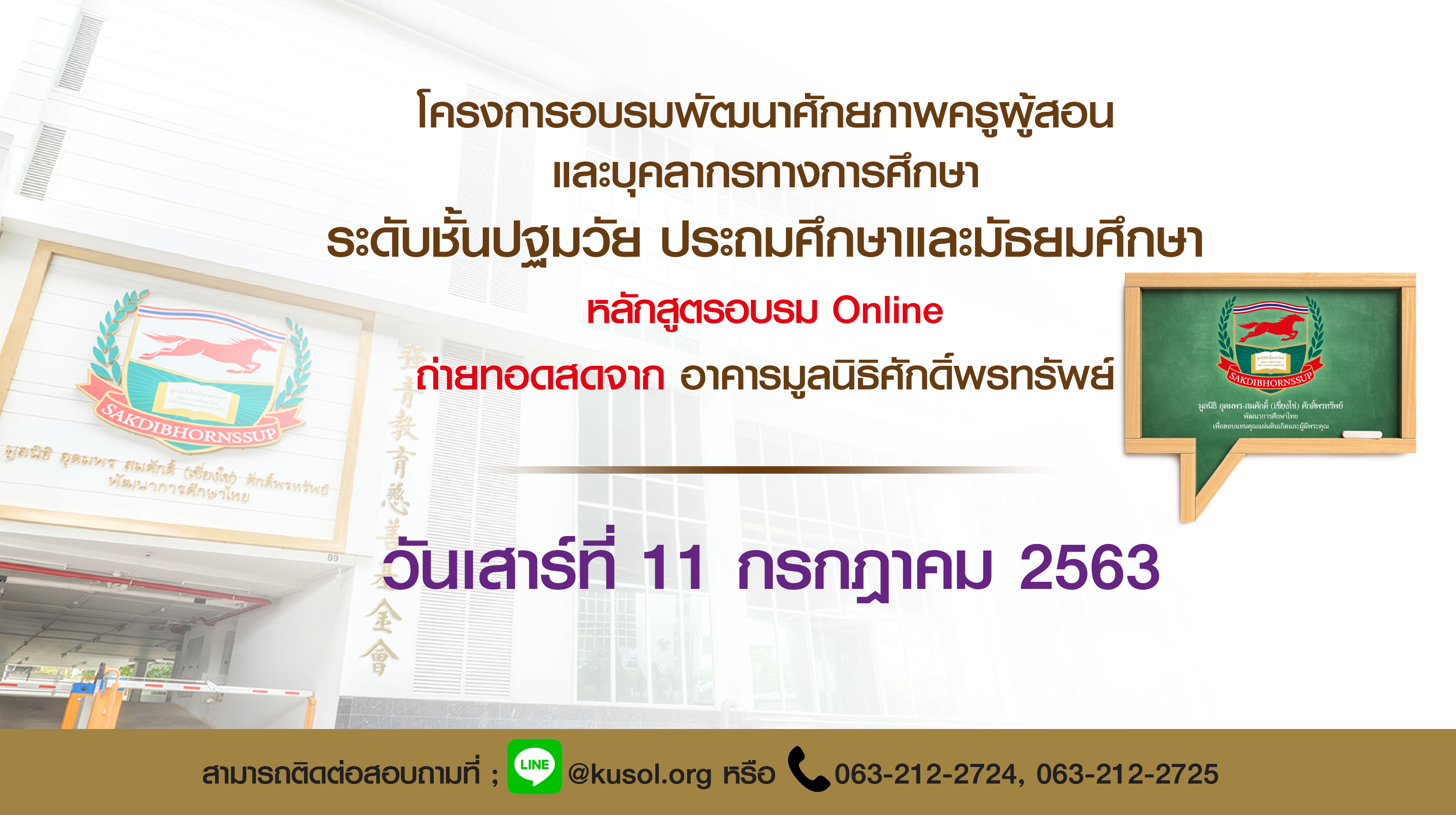 หลักสูตรอบรมออนไลน์ วันเสาร์ที่ 11 กรกฏาคม 2563 : เวลา 09.00-12.00 น. : 2 หลักสูตร / เวลา 14.00-17..00 น. : 2 หลักสูตร