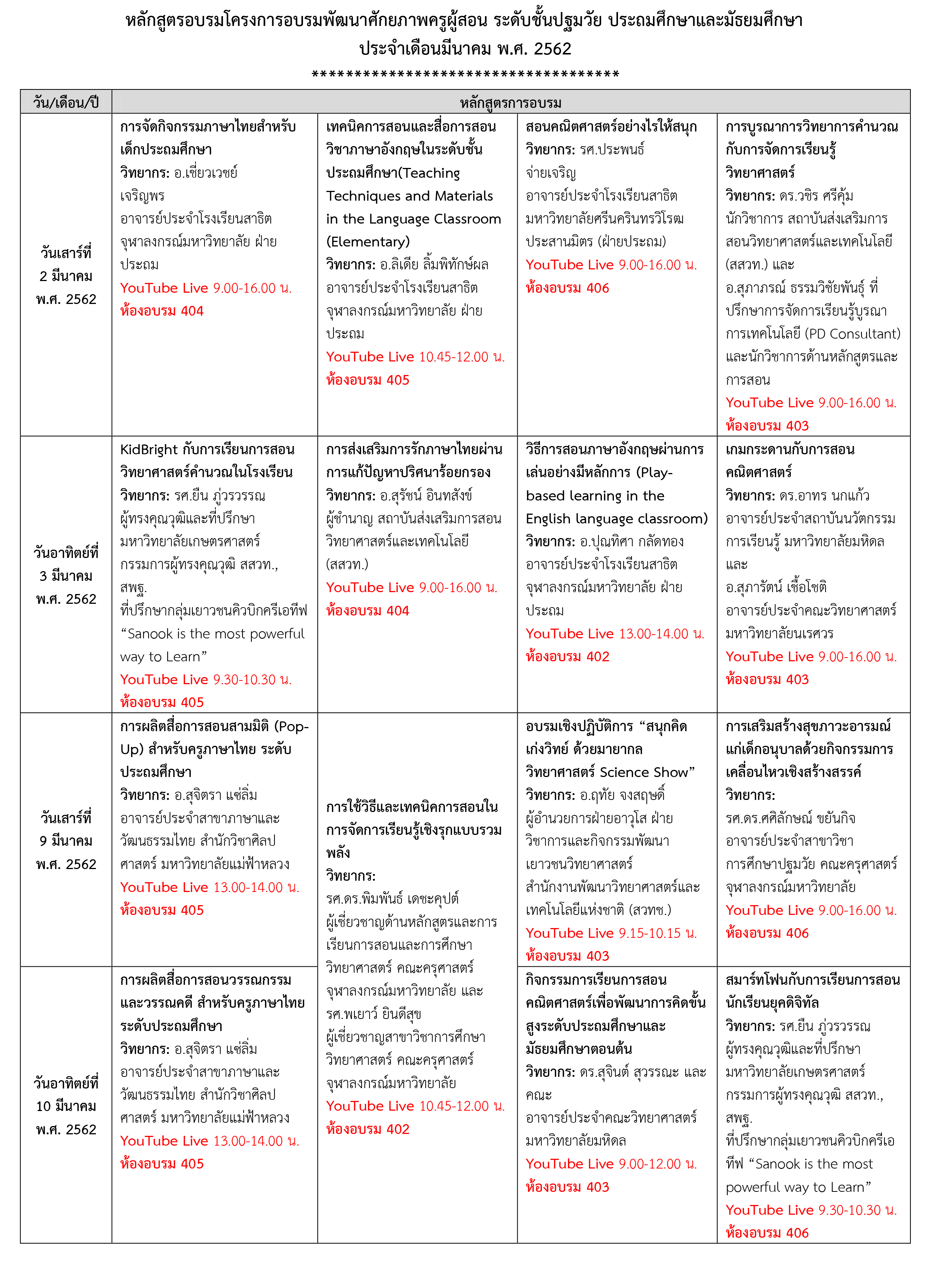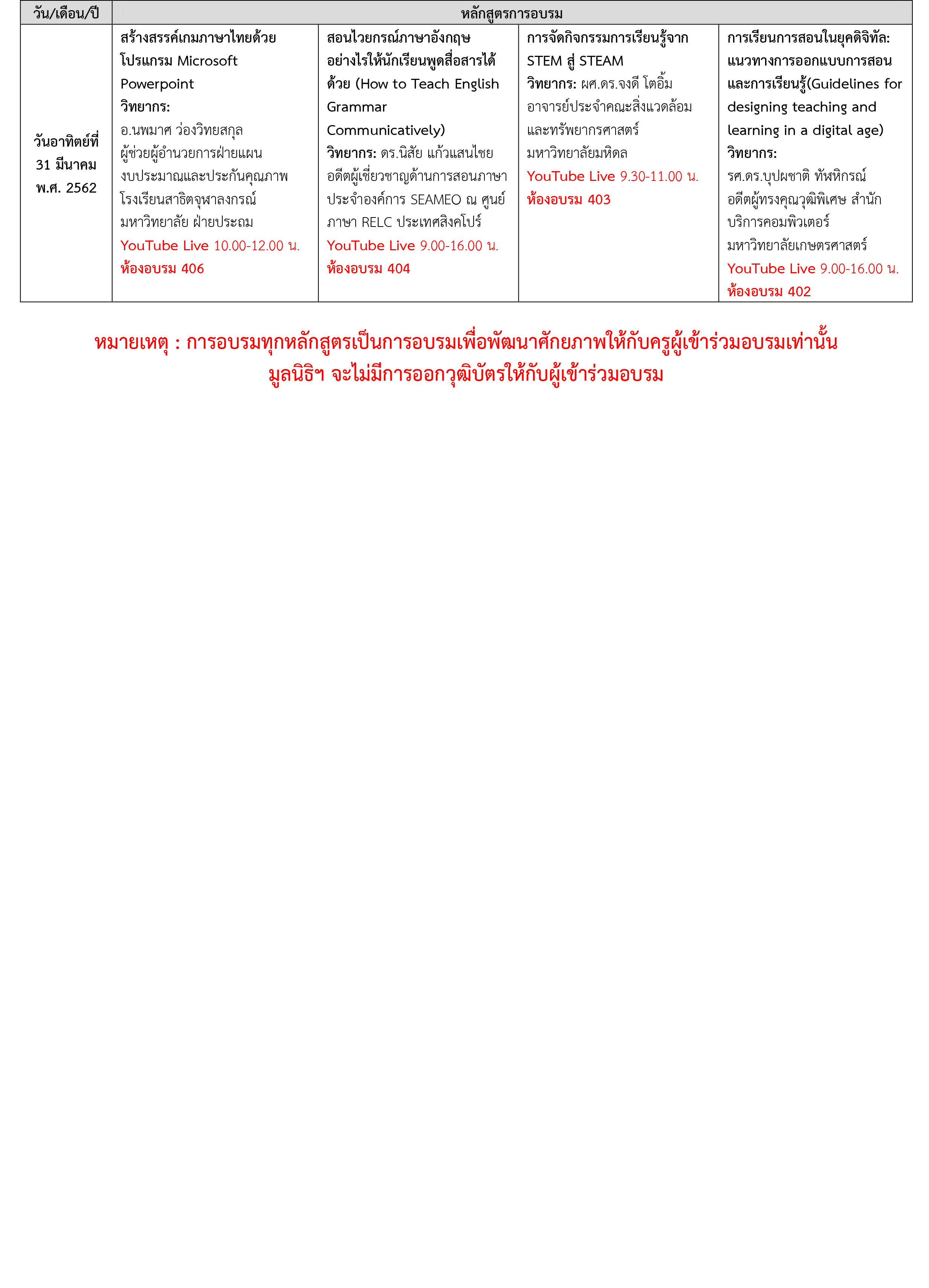 หลักสูตรอบรมโครงการพัฒนาศักยภาพครูผู้สอน ประจำเดือนมีนาคม 2562