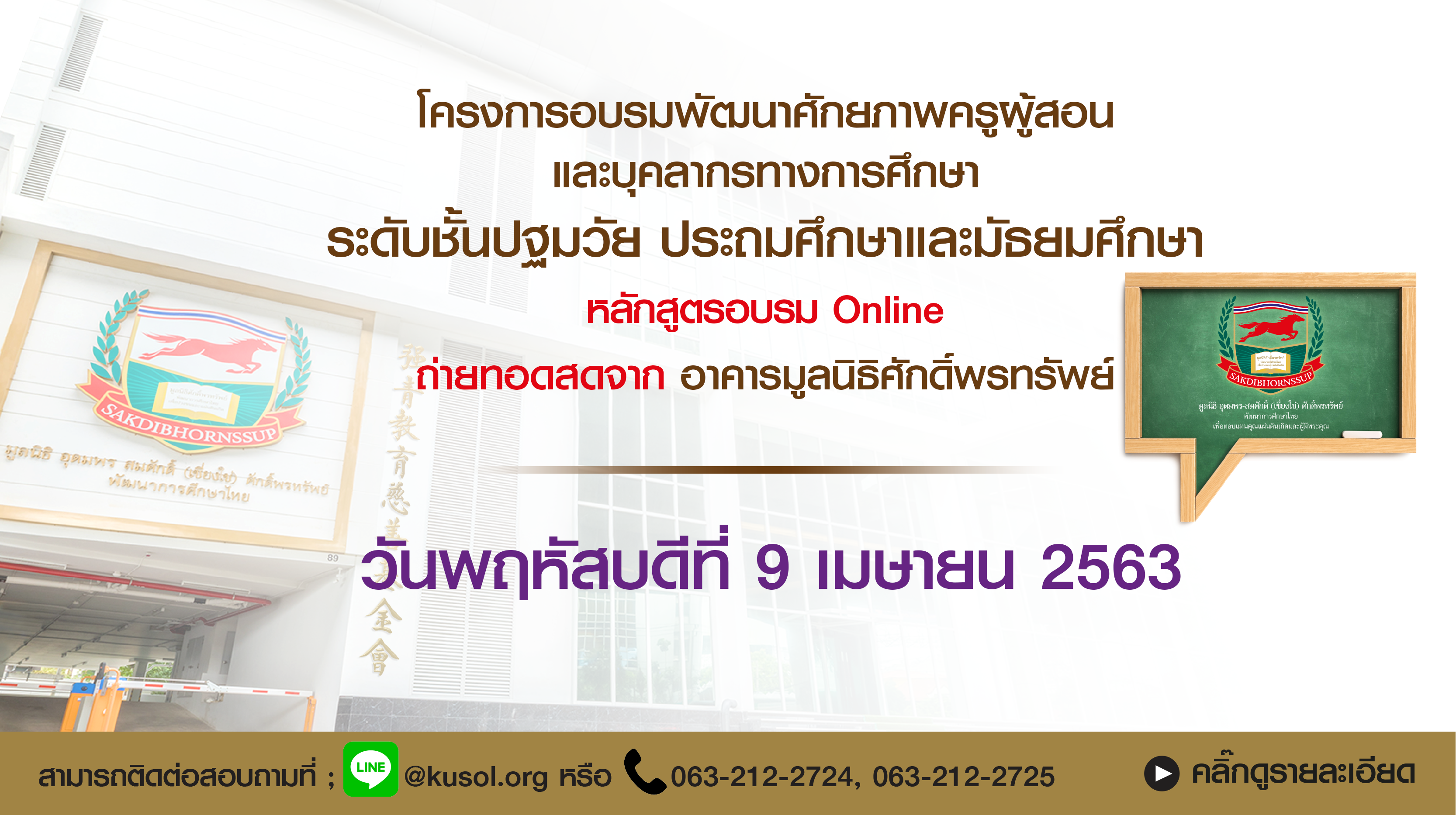 หลักสูตรอบรม วันพฤหัสที่ 9 เมษายน พ.ศ.2563