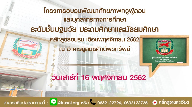 หลักสูตรอบรม วันเสาร์ที่ 16 พฤศจิกายน พ.ศ.2562