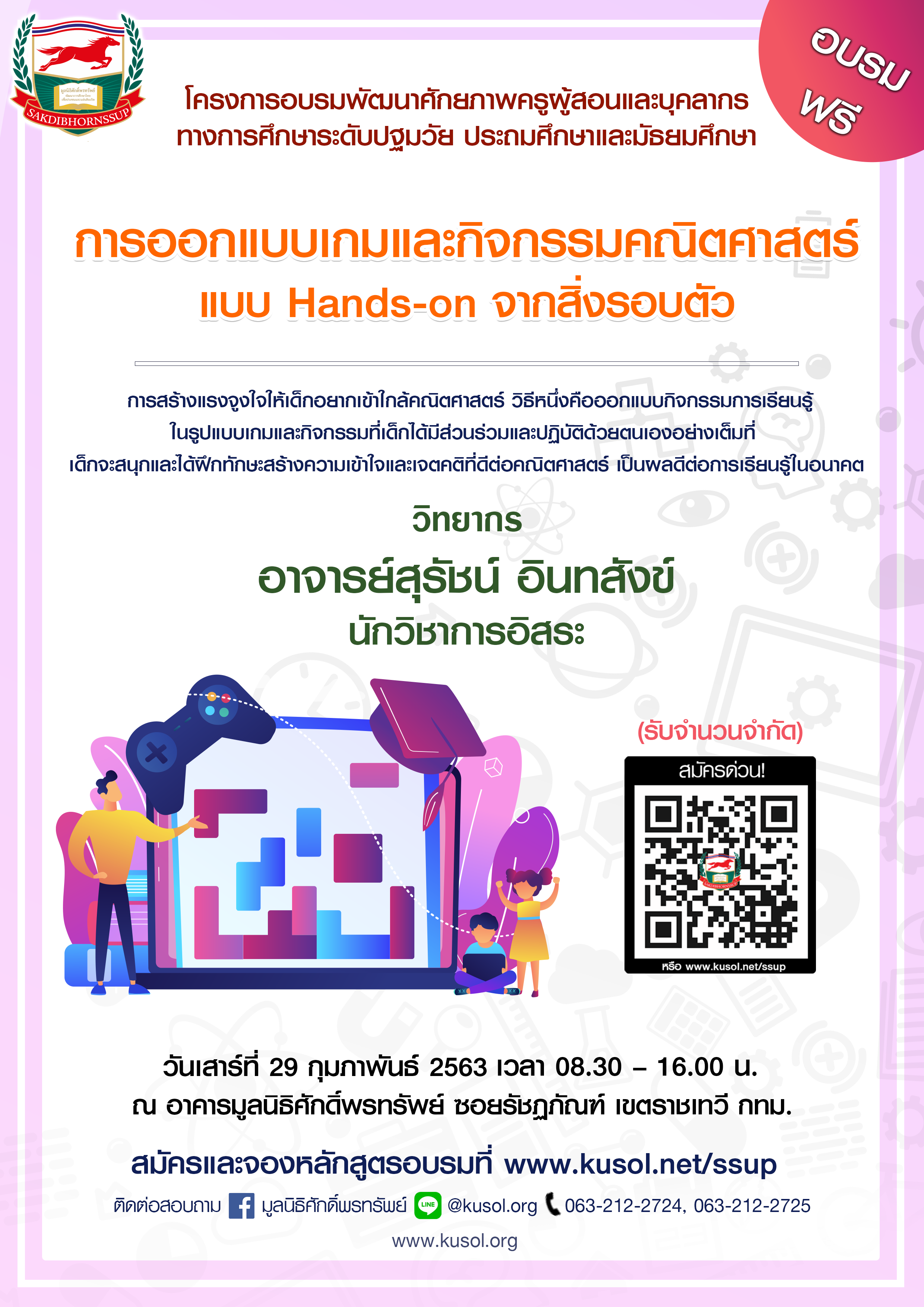 หลักสูตรอบรม วันเสาร์ที่ 29 กุมภาพันธ์ พ.ศ.2563