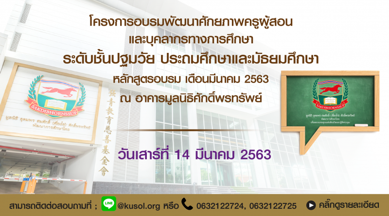 หลักสูตรอบรม วันเสาร์ที่ 14 มีนาคม พ.ศ.2563