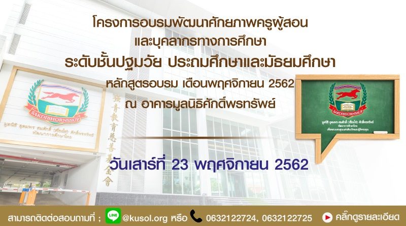หลักสูตรอบรม วันเสาร์ที่ 23 พฤศจิกายน พ.ศ.2562