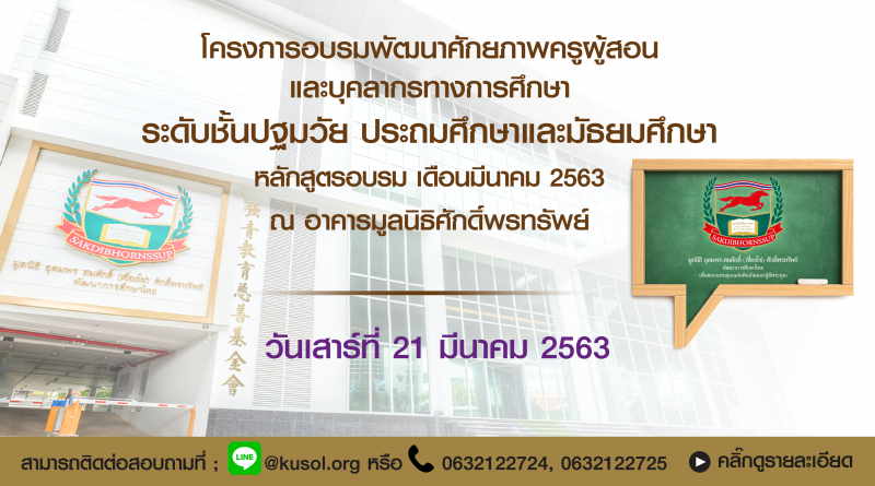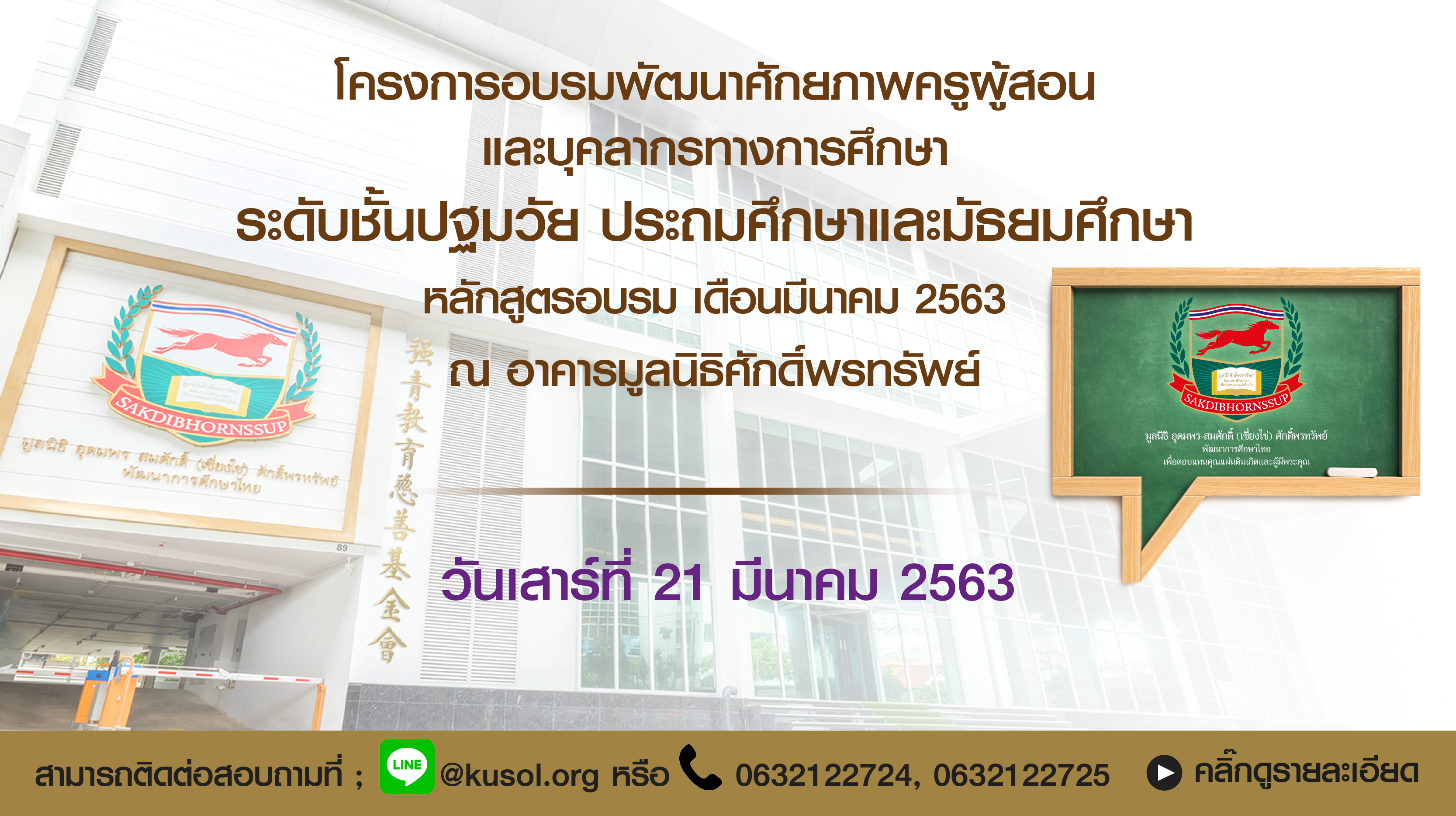หลักสูตรอบรม วันเสาร์ที่ 21 มีนาคม พ.ศ.2563