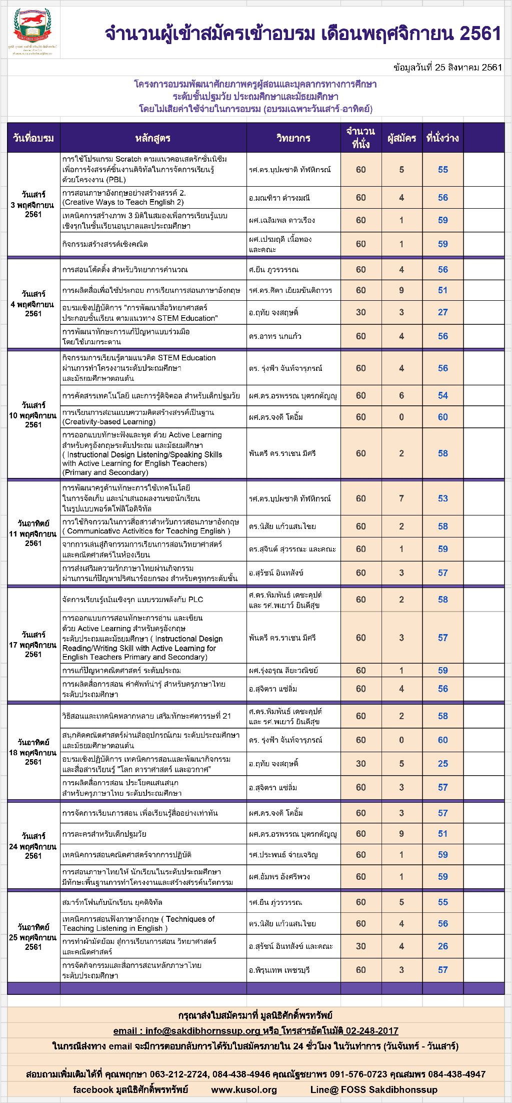 อัพเดทที่นั่งอบรม-พฤศจิกายน