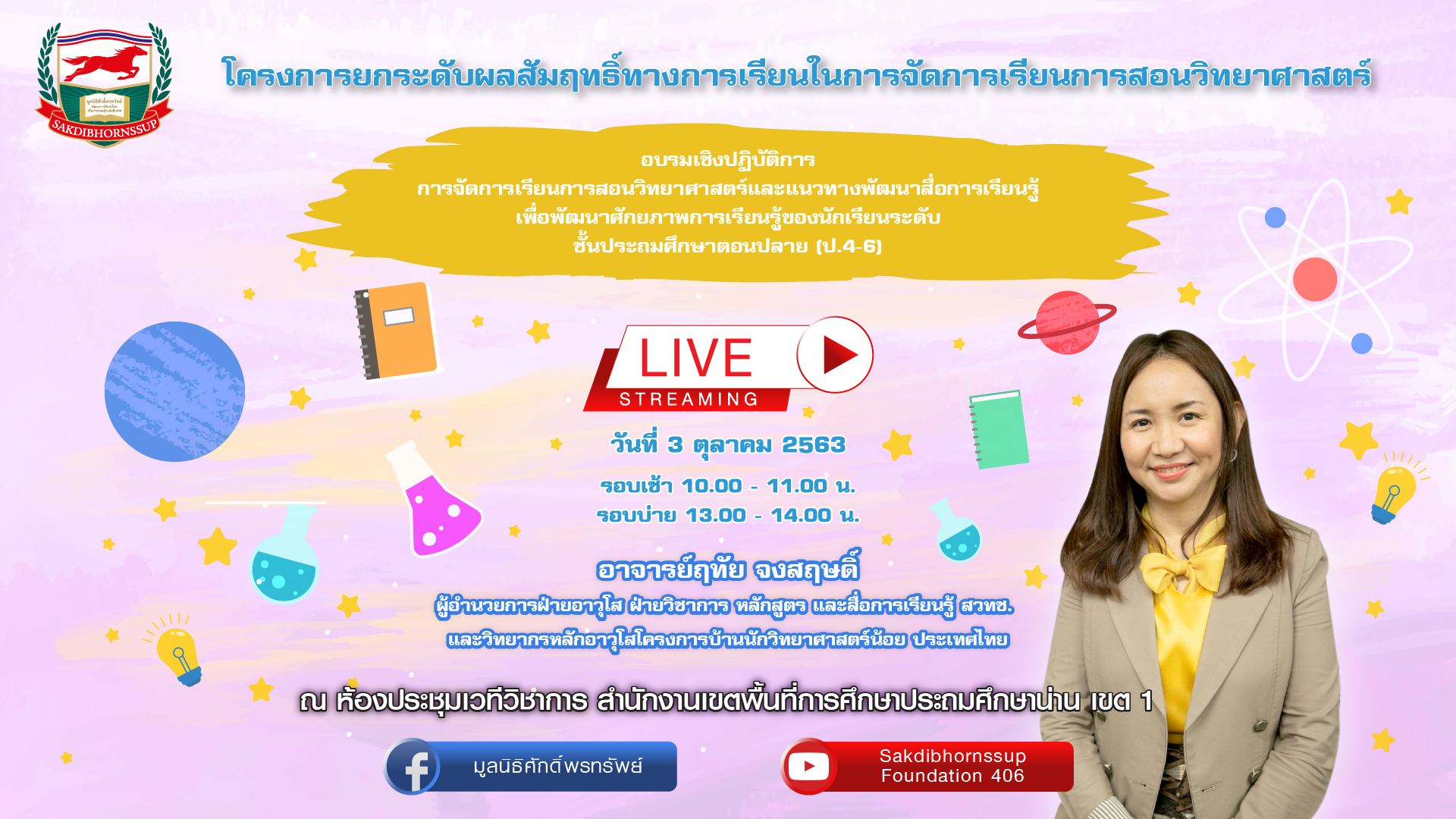หลักสูตร : อบรมเชิงปฏิบัติการ “การจัดการเรียนการสอนวิทยาศาสตร์และแนวทางพัฒนาสื่อการเรียนรู้ เพื่อพัฒนาศักยภาพการเรียนรู้ของนักเรียนระดับชั้นประถมศึกษาตอนปลาย (ป.4-6)”