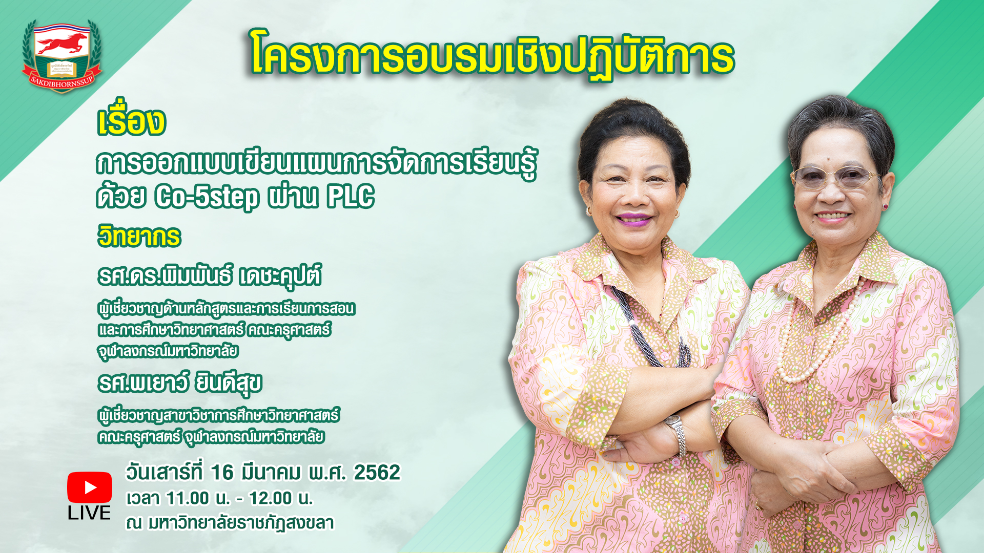 เชิญชมไลฟ์สด โครงการอบรมเชิงปฏิบัติการ โดยวิทยากรผู้ทรงคุณวุฒิ ถ่ายทอดสด จากมหาวิทยาลัยราชภัฏสงขลา