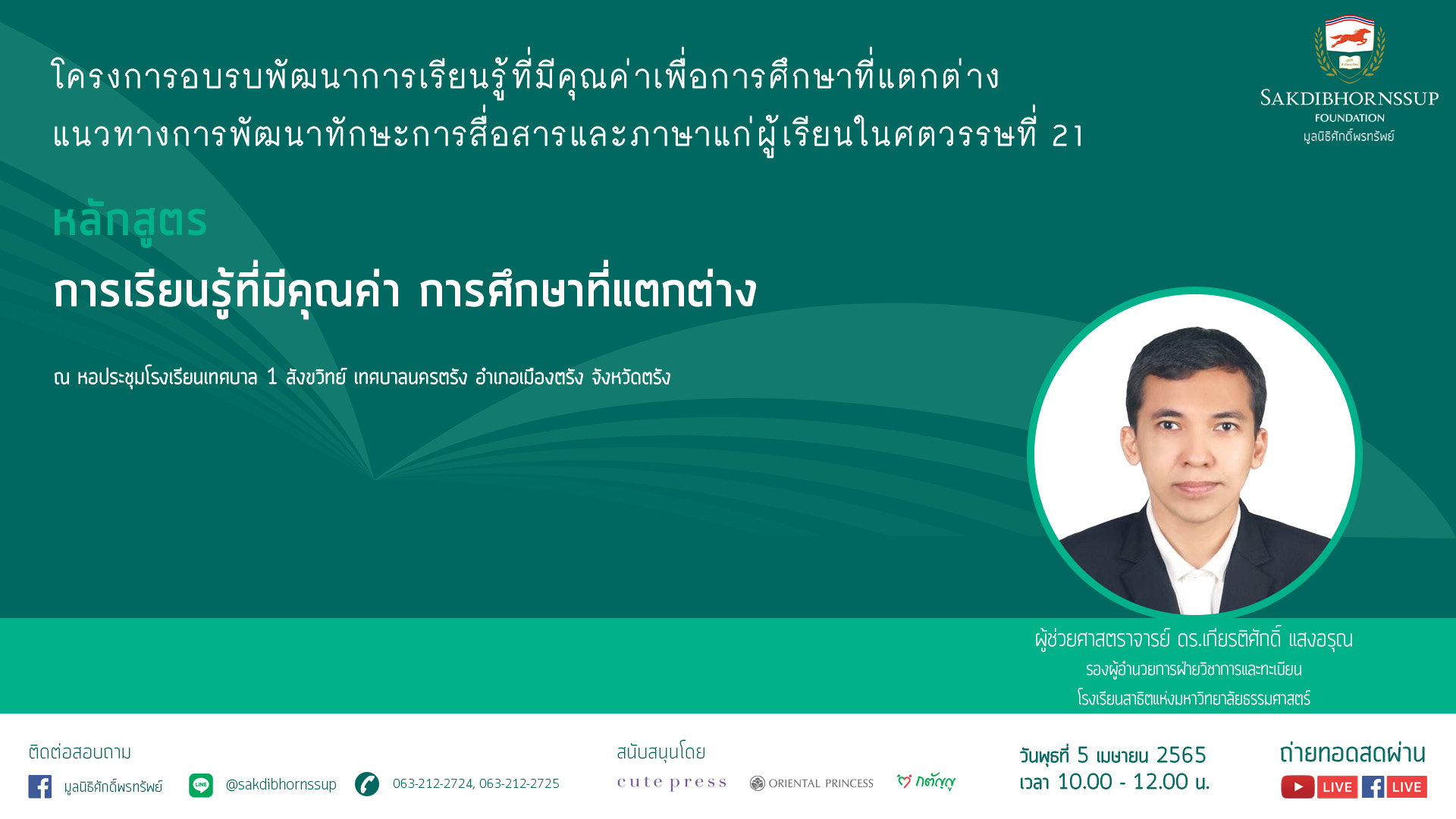 สามารถรับชมผ่านทาง Facebook Live : มูลนิธิศักดิ์พรทรัพย์