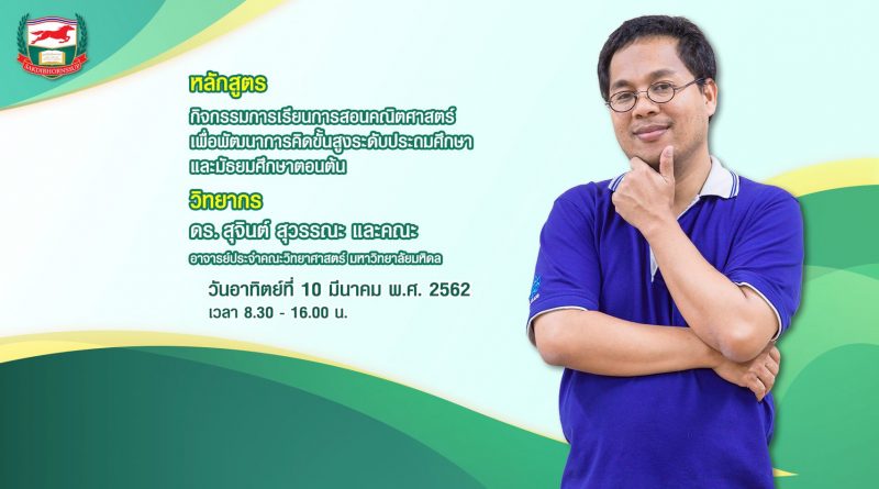 คลิปวิดีโอ : กิจกรรมการเรียนการสอนคณิตศาสตร์เพื่อพัฒนาการคิดขั้นสูง ระดับประถมศึกษาและมัธยมศึกษาตอนต้น วิทยากร : ดร.สุจินต์ สุวรรณะ และคณะ