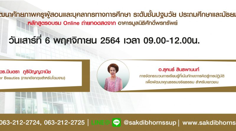 ประชาสัมพันธ์หลักสูตรอบรมออนไลน์ วันเสาร์ที่ 30 ตุลาคม 2564 : 10 หลักสูตร