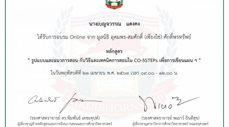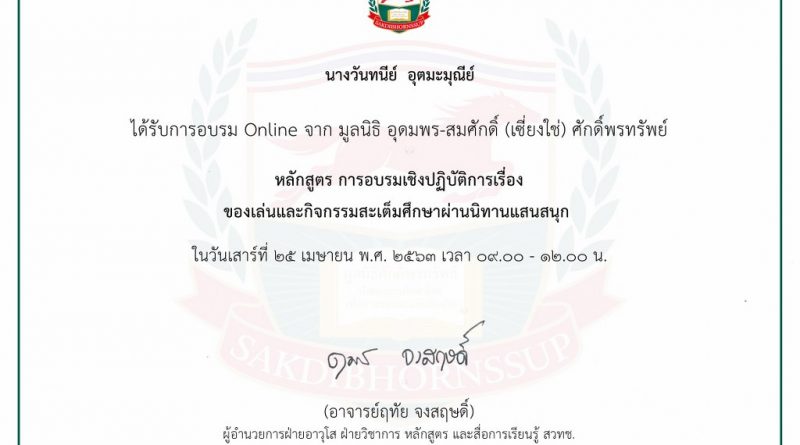 หนังสือรับรอง หลักสูตรอบรมวันพฤหัสบดีที่ 30 เมษายน 2563