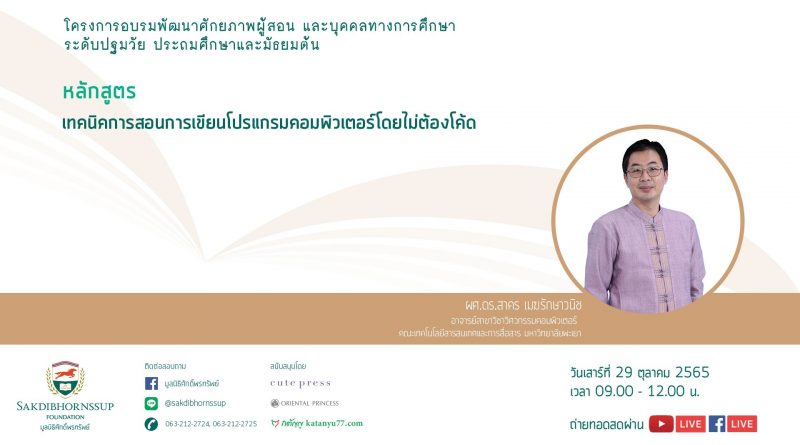 วิทยากร: ผศ.ดร.จงดี โตอิ้ม หลักสูตร: เทคนิคการสอนให้คิด วิเคราะห์ และแก้ปัญหา อบรมวันอาทิตย์ที่ 6 พฤศจิกายน 2565 เวลา 14:00-17:00 น. (หมดเขตส่งแบบทดสอบ เที่ยงคืนวันอาทิตย์ที่ 6 พฤศจิกายน 2565) คลิกประกาศรายชื่อ