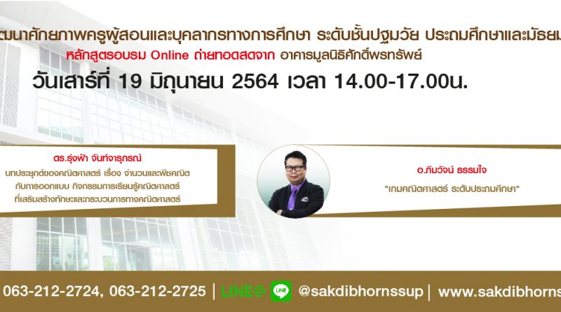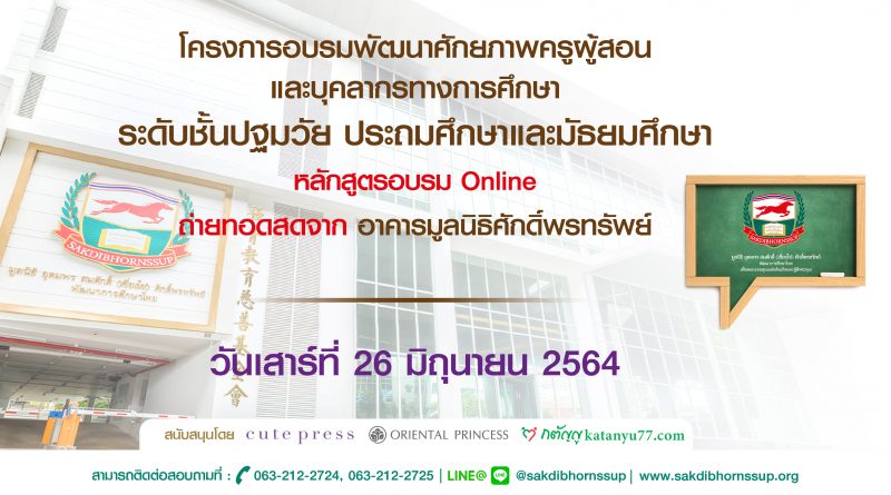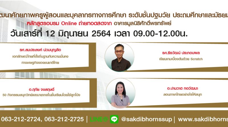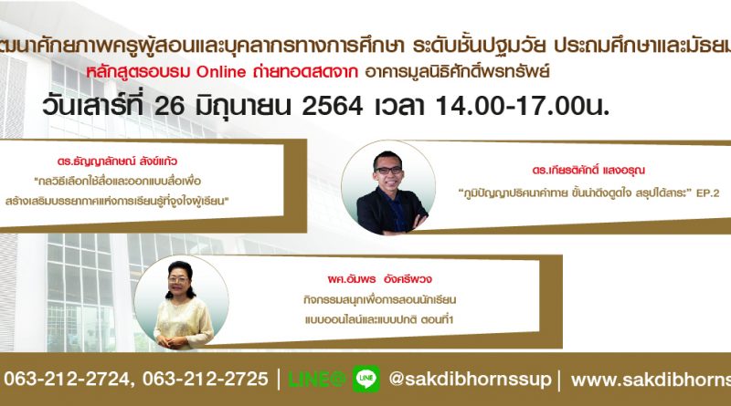 ประชาสัมพันธ์หลักสูตรอบรมออนไลน์ วันเสาร์ที่ 26 มิถุนายน 2564 : 9 หลักสูตร