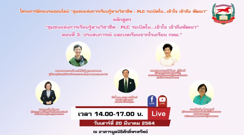 Read moreวันเสาร์ที่ 20 มีนาคม 2564 เวลา 14.00-17.00 น. หลักสูตร : โครงการ “ชุมชนแห่งการเรียนรู้ทางวิชาชีพ : PLC ระเบิดใน…เข้าใจ เข้าถึง พัฒนา ตอนที่ 3: ประสบการณ์ และบทเรียนจากโรงเรียน