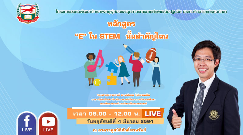 วันพฤหัสบดีที่ 4 มีนาคม 2564 เวลา 09.00-12.00 น. หลักสูตร : “E” ใน STEM นั้นสำคัญไฉน ดูรายชื่อ 👉 คลิก เข้าร่วมกลุ่มไลน์ 👉 คลิก หรือ Scan QR