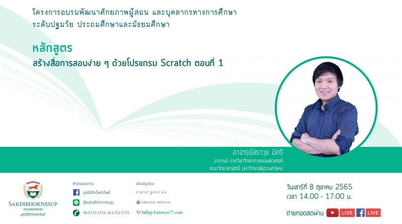 ประกาศรายชื่อ วิทยากร: รศ.ธีรวัฒน์ ประกอบผล หลักสูตร: Scratch กับการเขียนโปรแกรมเชิงคำนวณ อบรมวันเสาร์ที่ 8 ตุลาคม 2565 เวลา 14:00-17:00 น. ประกาศรายชื่อ 👉 👉 คลิก