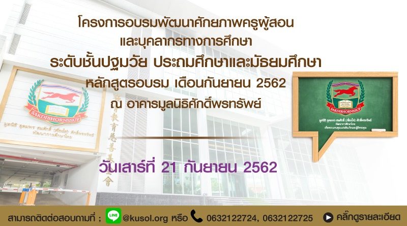 หลักสูตรอบรม วันเสาร์ที่ 21 กันยายน พ.ศ.2562