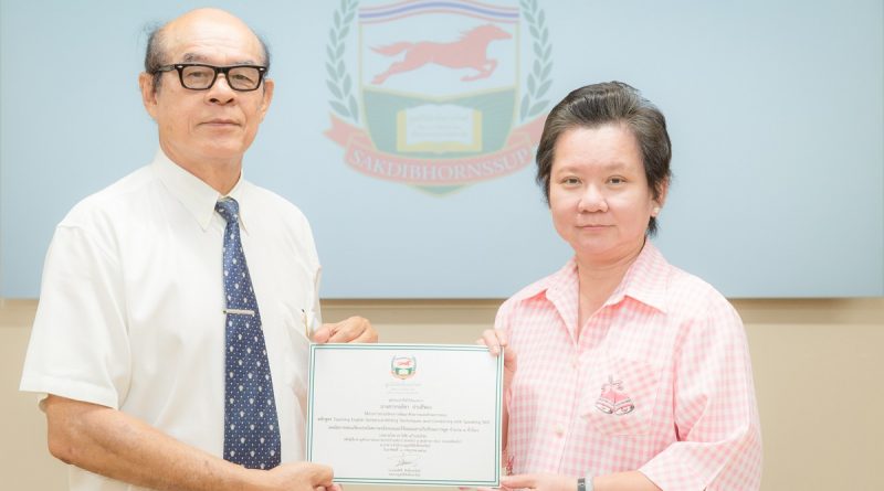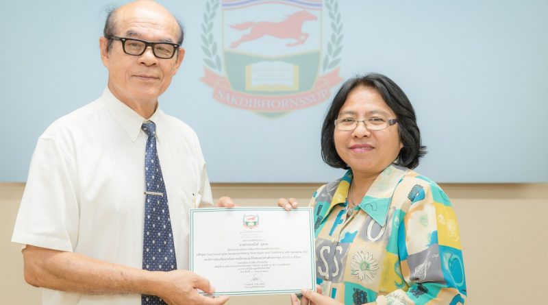 หลักสูตร Teaching English Sentence-Writing Techniques and Combining with Speaking Skill เทคนิคการสอนเขียนประโยคภาษาอังกฤษและให้ผสมผสานกับทักษะการพูด วิทยากร : ดร.นิสัย แก้วแสนไชย วันอาทิตย์ที่ 8 กรกฏาคม 2561 เวลา 08.30-16.00 น ณ ชั้น 5 สำนักงานมูลนิธิศักดิ์พรทรัพย์